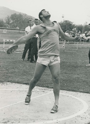 Bridgewater College, Action photo, Dave Boyd, throwing discus, 1965
