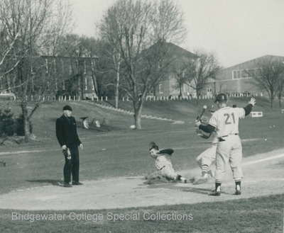 Bridgewater College, Baseball, action photograph, Jim Benson, sliding, 1964