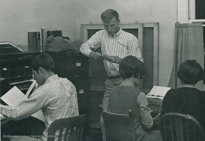 • Bridgewater College, Richard W. Linfield (photographer), Photograph of English professor Dr. Charles Churchman at the front of the classroom, undated by Richard W. Linfield