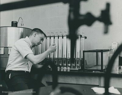 Bridgewater College, Photograph of Leroy Carter using a Tracer Lab Uitilty Scaler, undated
