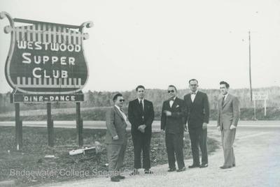 Bridgewater College, Photograph of men by the Westwood Supper Club sign, circa 1947
